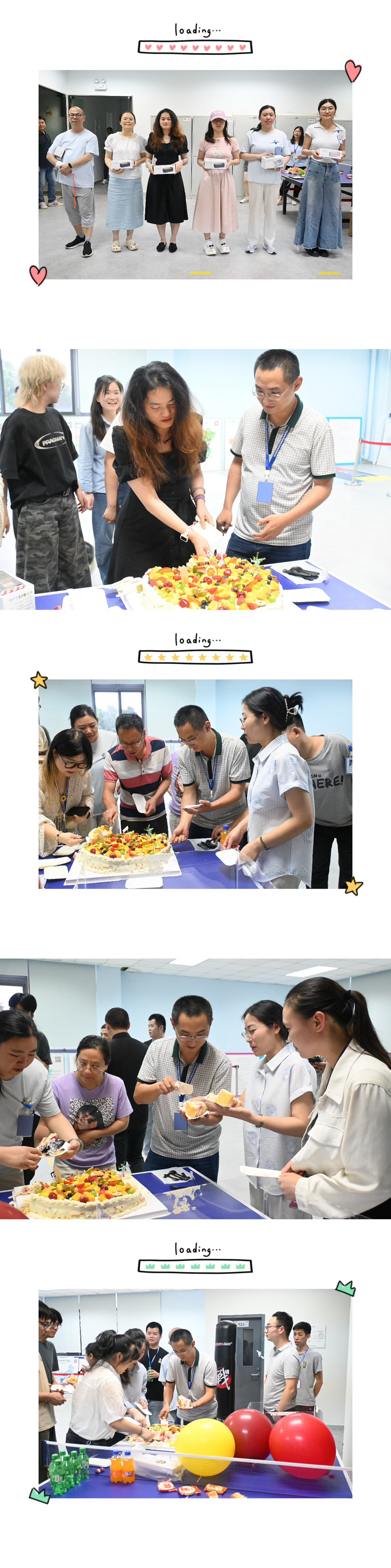 踏入活動(dòng)現(xiàn)場(chǎng),精心布置的空間瞬間讓人感受到濃郁的溫馨氛圍。長(zhǎng)桌變身「快樂補(bǔ)給站」,琳瑯滿目的美食、沁爽的飲品與新鮮的水果有序擺放,宛如一幅誘人的生活畫卷;中心位置,承載著美好祝愿的生日蛋糕熠熠生輝,儀式感撲面而來(lái)。不僅滿足了員工的味蕾,更傳遞出企業(yè)對(duì)員工細(xì)致入微的關(guān)懷。