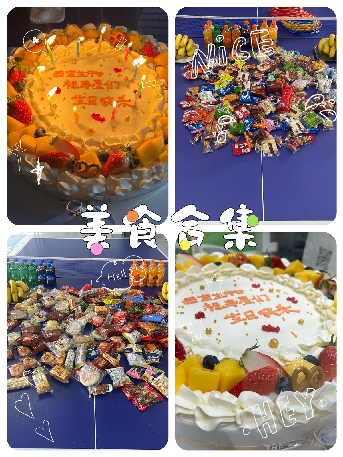 生日會(huì)現(xiàn)場(chǎng),公司為大伙準(zhǔn)備了琳瑯滿目的零食、飲料、新鮮水果,還有誘人的生日蛋糕。壽星們圍聚蛋糕旁,在全場(chǎng)溫馨的祝福歌聲中,一同許下美好的生日愿望,隨后在眾人的歡呼聲里吹滅蠟燭,共同分享這份甜蜜,感受集體慶生的溫暖。