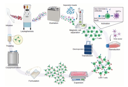 不同于HIV-1病毒改造后的慢病毒載體感染T細(xì)胞,NK細(xì)胞缺乏高效的慢病毒載體。目前,主要采用瞬轉(zhuǎn)工藝作為生產(chǎn)工藝。