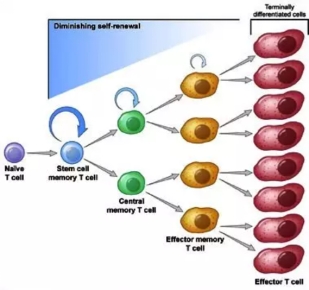 依靠IL-2的傳統(tǒng)培養(yǎng)中,激活擴(kuò)增得到的T細(xì)胞中,完全分化的效應(yīng)T細(xì)胞(TEF)占比更多。在使用IL-15部分替代IL-2的培養(yǎng)中,未完全分化的記憶T細(xì)胞(Tscm)的占比較僅以IL-2的顯著的多,研究表明,T細(xì)胞亞群的選擇是CAR-T細(xì)胞治療效果的基礎(chǔ)。在這方面,中央記憶T細(xì)胞(TCM)的CAR轉(zhuǎn)導(dǎo)似乎對體內(nèi)有效的細(xì)胞擴(kuò)張、存活和持久性至關(guān)重要,同樣數(shù)量細(xì)胞移植,移植Tscm的子代細(xì)胞數(shù)量較Tcm高10~100倍(Gattinoni L, Nat. Med.,2011)。此外,選擇幼稚或分化程度較低的CD8+T細(xì)胞進(jìn)行轉(zhuǎn)導(dǎo)可以使輸注后T細(xì)胞增殖和體內(nèi)持久性增加。