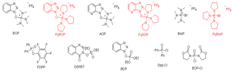 AAU16010A | 1H-苯并三唑-1-基氧三吡咯烷基六氟磷酸鹽(PyBOP) | 128625-52-5 | 副產(chǎn)物毒性低 |