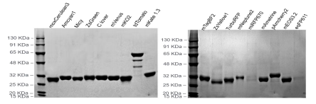 ![]() SDS-PAGE 不同激發(fā)光下的熒光成像 | ![]() 自然光下染色的純化蛋白 |
