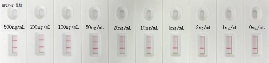 圖3 膠體金層析平臺(tái)測試HPIV-2抗原梯度示意圖